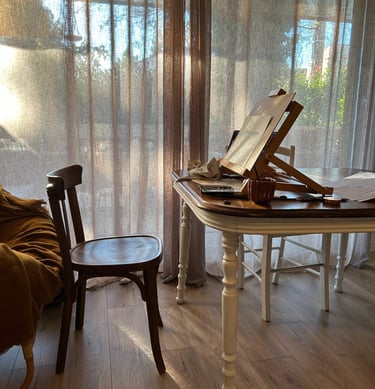 Je regarde les photos que vous m'envoyez, j’écoute les souvenirs que vous m’en dites, et j’essaie d’en retrouver la douceur : une fenêtre entrouverte, une glycine qui grimpe, un chemin familier, la lumière d’un soir d’été...